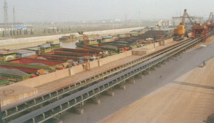 一:產(chǎn)品應用范圍 廣泛應用于冶金、煤炭、水電、機電、化工、交通等部門,輸送散狀物料或成件物品。根據(jù)輸送線路要求,可以單獨一臺,也可以多臺或與其它輸送機組成系統(tǒng)作水平或傾斜輸送。 輸送機一般環(huán)境溫度+45℃到-10℃范圍內(nèi)作用,對于有防塵、防爆、防腐蝕要求的場合需要輸送帶可逆運行輸送時,應另采取措施。 二、技術特征和主要參數(shù): 本機可輸送堆積比重1.0-2.5噸/米3的各種散狀物品,本廠生產(chǎn)帶寬500、650、880、1000等規(guī)格,傳動功率從1.5KW到185KW。帶速有0.8、1.0、1.25、1.65、2、0米/秒五種。大輸送量見下表。 三、結構概述: 總機布置基本情況如附圖。主要結構有: 1、驅(qū)動部分。系由裝置在型鋼焊成的底座上的電動機→高速聯(lián)軸器→減速器→減速聯(lián)軸組成。根據(jù)布置要求:驅(qū)動裝置設有左裝和右裝二種,另外,本廠配有功率1.5KW到185KW,速度0.80、1.0、1.25的油冷式電動滾筒。 2、滾動部分:分傳動滾筒和改向滾筒兩大類。 3、托輥部分:分槽形、平形、調(diào)心和緩沖托輥等。 4、清掃部分:分彈簧清掃器和空段清掃器 5、卸料部分:分固定犁式和卸料器和電動卸料車。 6、制動部分:有帶式逆止器和滾柱逆止器兩種。 7、附件:有罩殼、導料槽、漏斗等。